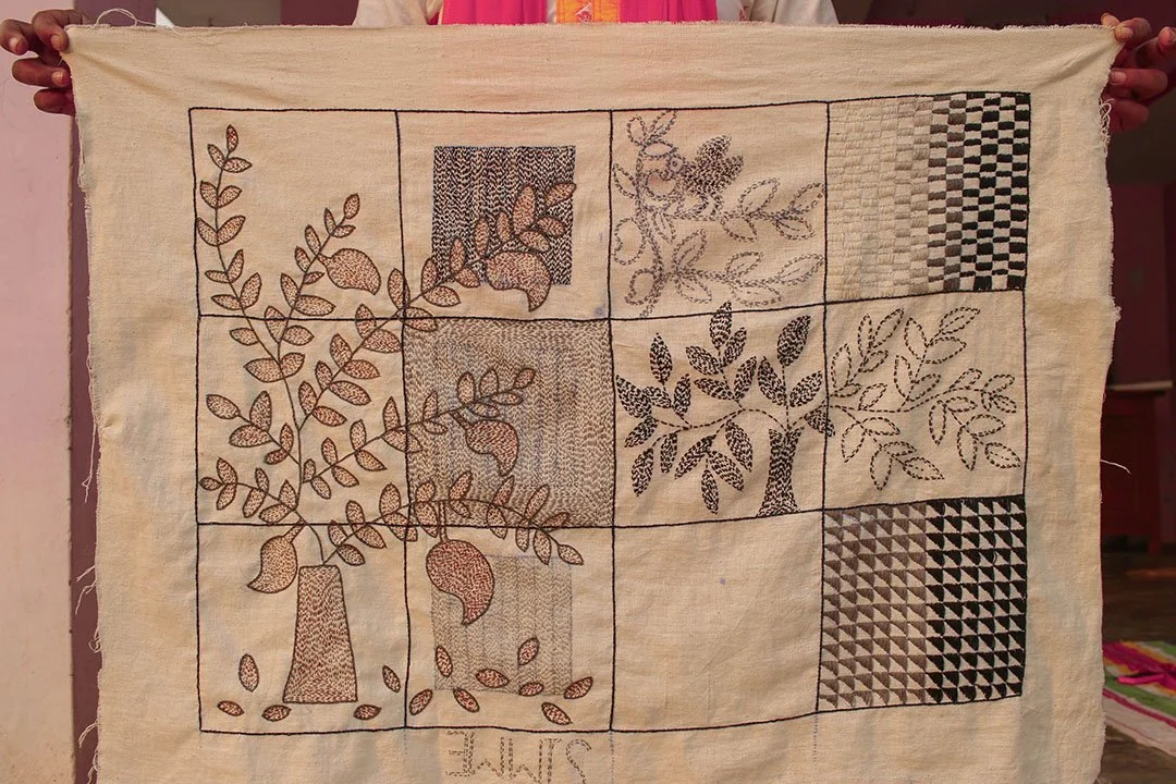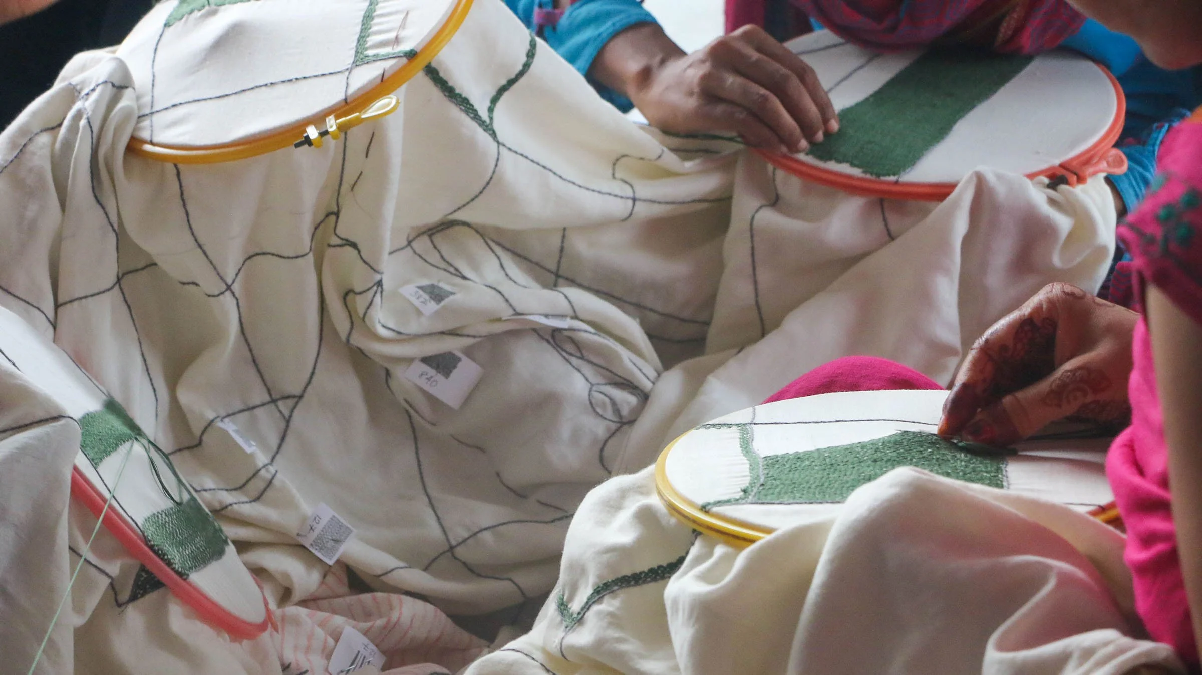 After multiple collaborative workshops we finalize our designs, which are then converted into easily understandable variations. Our artisan partners then work from their homes on receiving these. They spent an incredible amount of time getting it all just right, creating the textile artworks with all their heart, ensuring that the cumulative vision of everyone involved is processed impeccably. In their sincere and wholehearted effort lies the promise of our incomparable quality. On receiving these creations back we perform the finishing processes to ensure our pieces are in perfect order for their receivers.